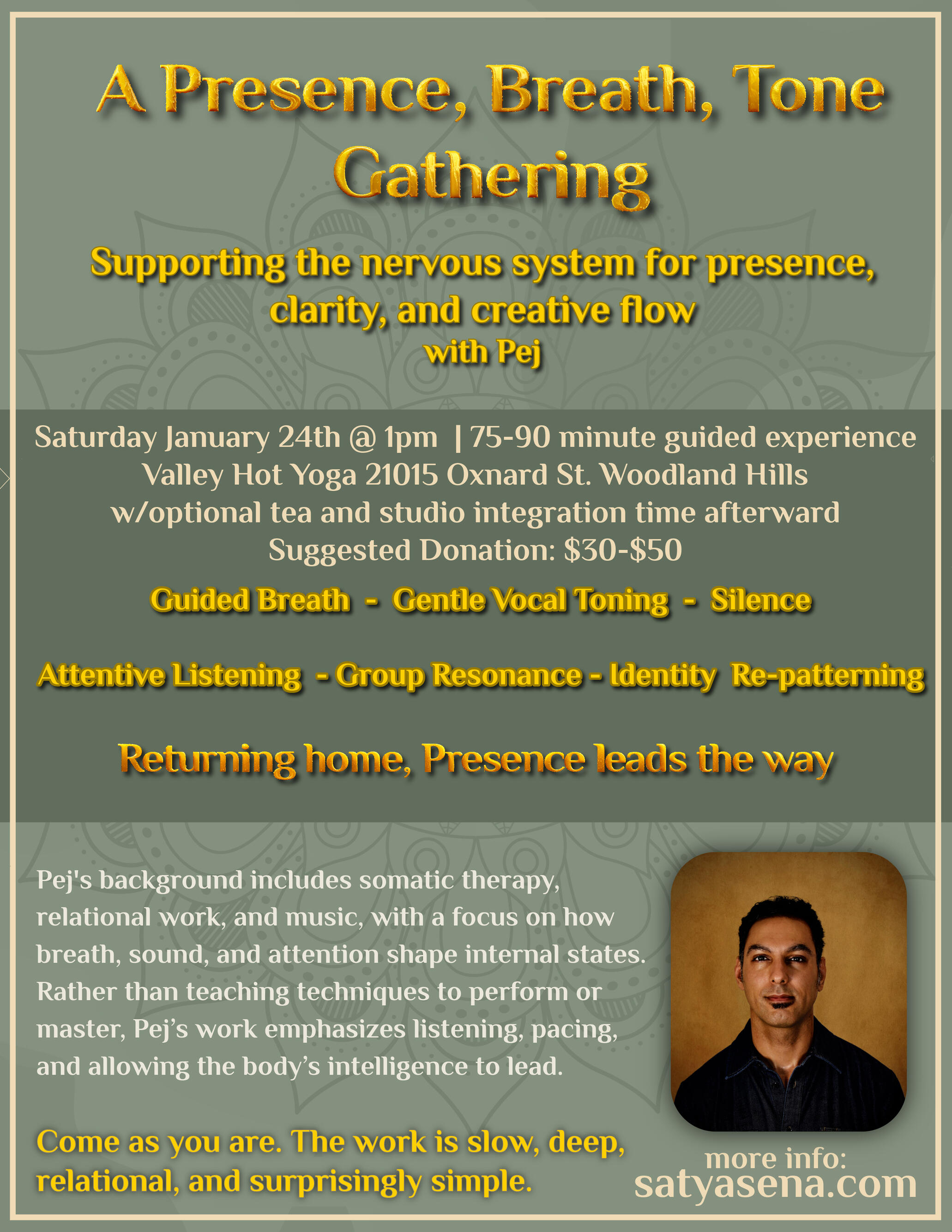 His work focuses on helping people recognize and unwind survival-driven patterns of effort, vigilance, and self-monitoring - not through insight or emotional processing, but through direct, embodied awareness.Pej’s approach is grounded, experiential, and non-performative. He does not guide toward specific outcomes or states, and does not rely on spiritual or therapeutic framing. His work emphasizes simplicity, clarity, and allowing the nervous system to settle without interference.He works with individuals, small groups, and retreats.